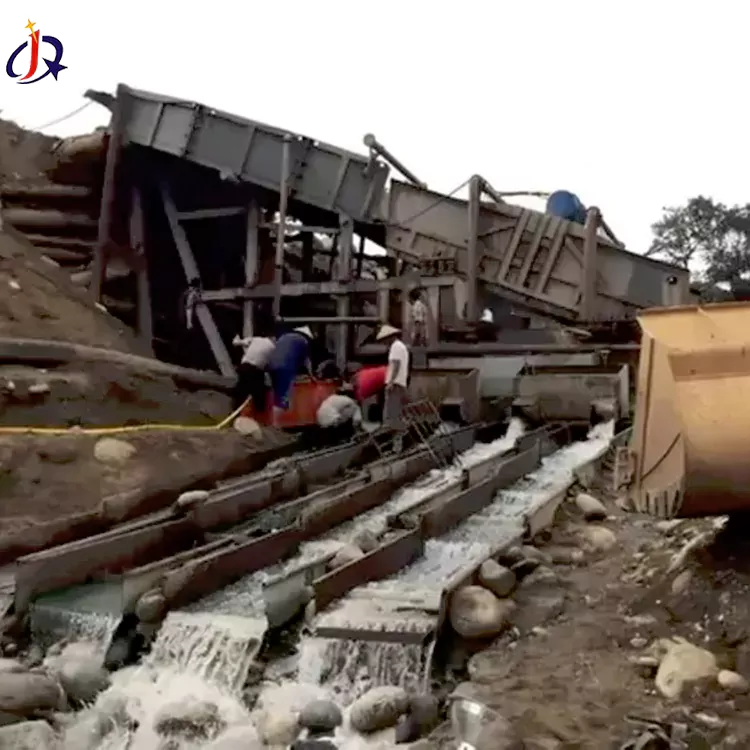 Instalacje do przemywania złota aluwialnego to kompletny zestaw urządzeń do przerobu rudy przeznaczony dla kopalń złota o dużej zawartości gliny. Łącząc płukanie mechaniczne z płukaniem hydraulicznym, zakłady te umożliwiają usuwanie gliny i oddzielanie rudy od szlamu, umożliwiając w ten sposób wzbogacanie i odzyskiwanie cząstek złota. Głównym wyzwaniem, którym się zajmują, jest dysocjacja cząstek złota owiniętych w glinę, a następnie odzyskiwanie złota poprzez separację grawitacyjną i inne procesy.